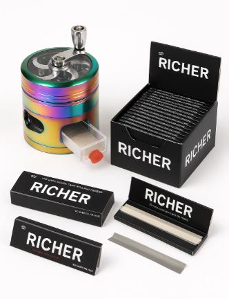 (5 Pack Richer Paper -63mm One Metal Herb Grinder)Bundle Machine Smoking Accessories